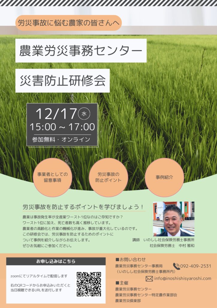 農業労災事故防止研修会のご案内